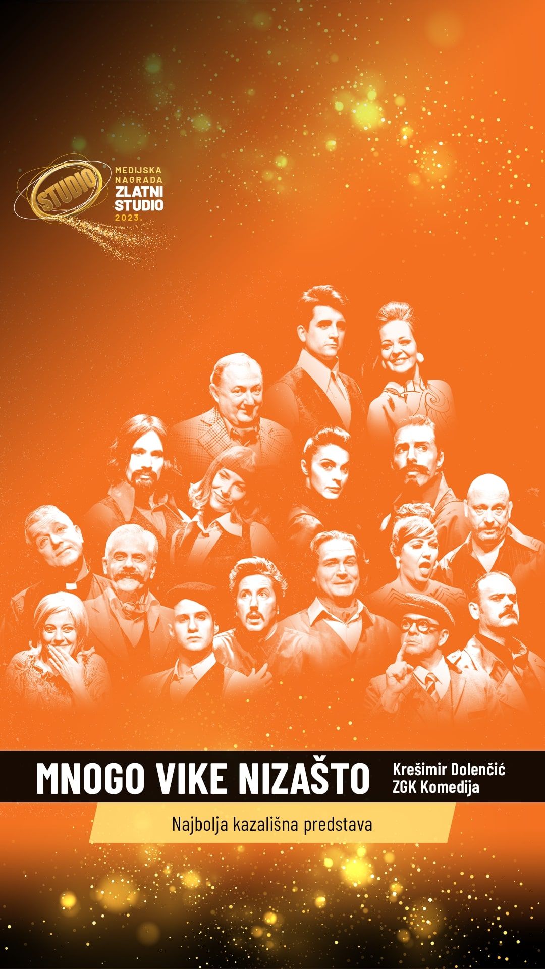 Predstava Kazališta Komedija MNOGO VIKE NIZAŠTO Williama Shakespearea, u režiji Krešimira Dolenčića te OGNJEN MILOVANOVIĆ u finalu su za medijsku nagradu Jutarnjeg lista “Zlatni Studio” u kategorijama najbolja kazališna predstava i najbolje novo lice u kazalištu i na filmu. Pobjednike bira publika, a glasanje završava u petak, 20. siječnja 2023. u ponoć – do tad možete dati svoj glas na linku Jutarnji.hr.